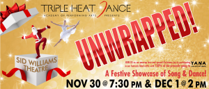 THD Presents "Unwrapped"7:30 pm - 8:30 pmA festive showcase of song and dance. Join Triple Heat Dance - Academy of Performing Arts as they spread some Christmas cheer. Let the magic of Christmas bring you joy as you unwrap the gifts under the tree and see them come to life on stage. A show for all ages!Sid Williams TheatreMapMore details »